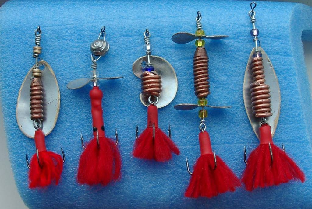Рекомендуют для большего привлечения хищника впереди вертушки установить пропеллер из того же металла, а тройник — поставить двойник и опушить его шерстяными красными нитками. Плюс и лепестки – левый и правый по ширине больше сделать.