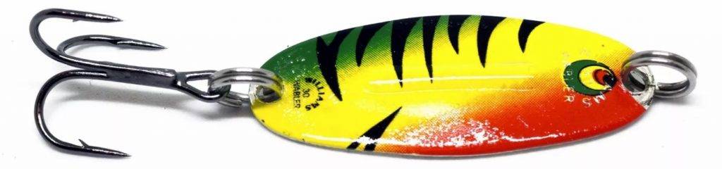 В осенние месяцы стоит применять крупные блесны, так как хищник в это время клюет увесистый и сопротивление при вытягивании на берег будет оказано достойное.