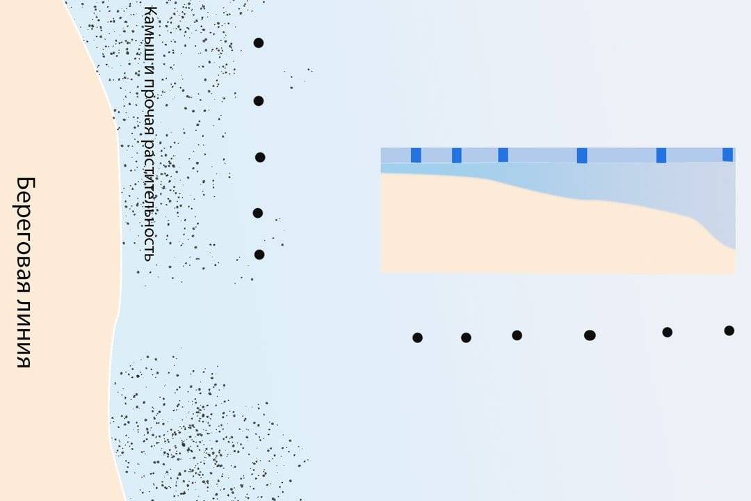 Расположение лунок при ловле на бокоплав — вдоль береговой линии при ловле в начале зимы и в глубину — при ловле в средине зимы и в глухозимье