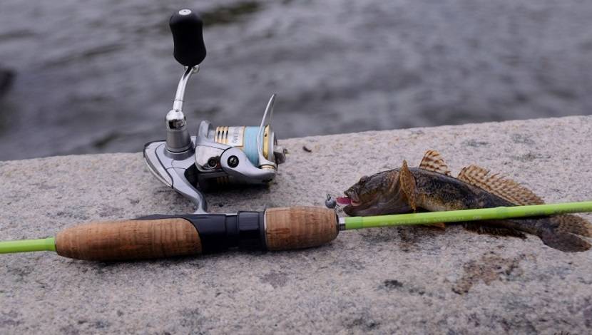 В отличии от предыдущих снастей, спиннинг хорош тем, что снасть можно подать довольно далеко и облавливать больше мест, где предположительно обитает бычок.