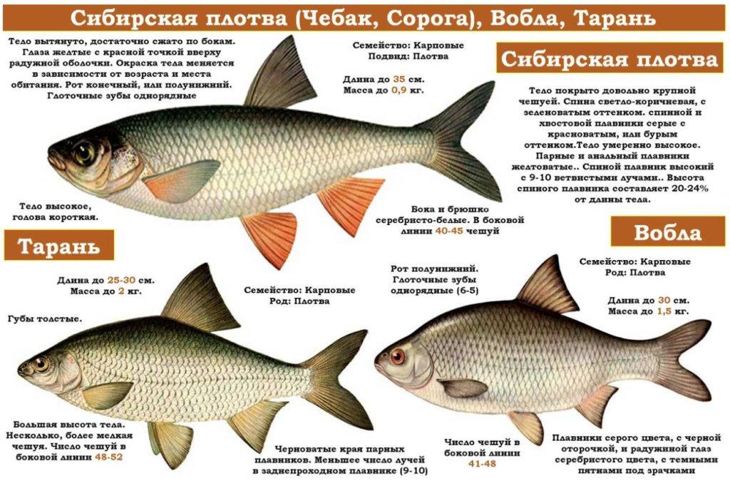 Этот вид рыб еще называют сибирской плотвой. От своих ближайших родственников чебак отличается формой чешуек. На каждой челюсти у него всего по 5-6 глоточных зубов. В боковой линии расположено по 40-45 чешуек. Рыба отличается от своих сородичей расположением спинного плавника и строением пасти.