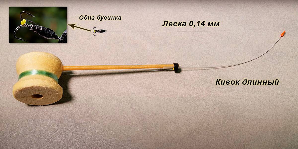Это очень важный инструмент, определяющий качество анимации приманки и, следовательно, количество поклевок. Хорошая кивка-червяк должна быть легкой, упругой и не подмерзать на морозе. Наконечник из лавсана — идеальный вариант. Также неплохо смотрятся варианты из тонколистовой стали. Такие луки изготавливают, в частности, из часовых рессор. Стандартная длина этого рыболовного снаряжения — около 15 см.