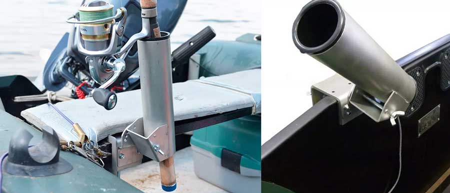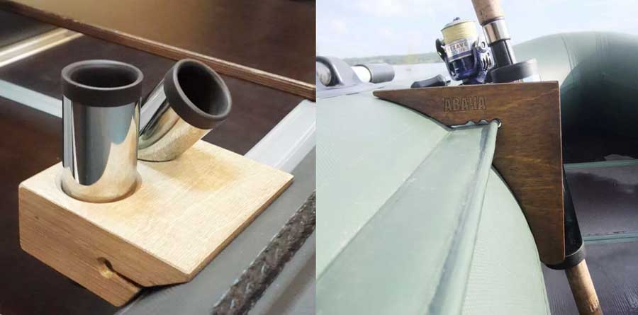 В совмещенных моделях подставка под удочку имеет одно целое с креплением к лодке, это повышает мобильность установки и быстроту, но зато такой держатель имеет большие габариты при транспортировке.