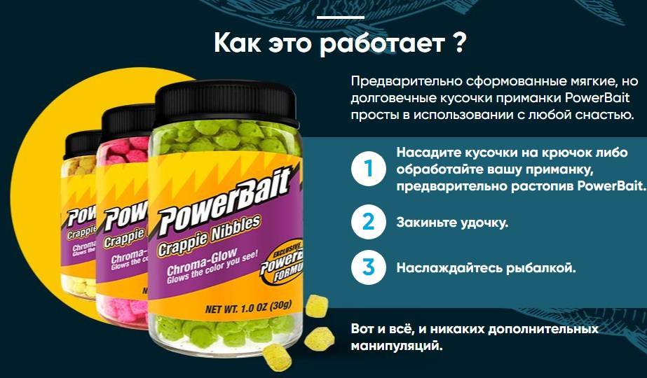 Карп предпочитает пахучие и активно растворяющиеся в воде приманки, рекомендуем попробовать инновационную насадку PowerBait, которая выпускается с несколькими вкусами: