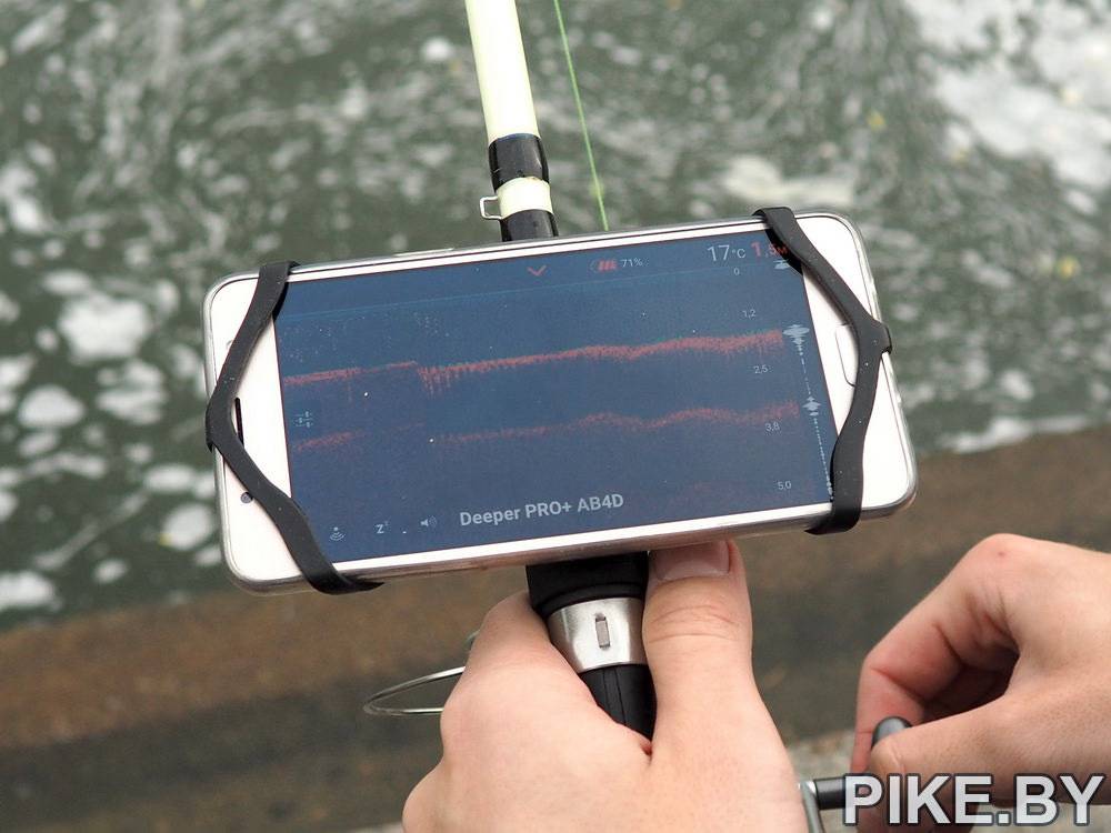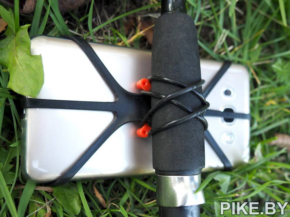 Чтобы освободить руки, для смартфона производитель разработал специальное крепление. Оно универсально, цепляется за ручку удилища и превращает твою удочку в высокотехнологичный гаджет с экраном.