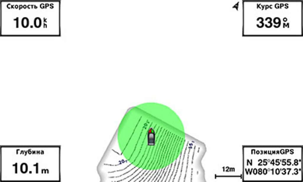 Навигация: частота 1 Герц, 5000 маршрутных точек, создание карт глубины в режиме онлайн QuickDraw Contours;