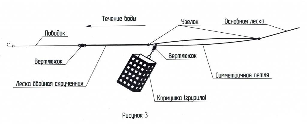 В этом случае кормушка скользит по леске в определённых пределах. Для леща на быстром течении она сначала крепится к верлюжку, а уже потом вертлюжок на петле крепится к леске. Больше всё-таки подходит для карпа и карася.