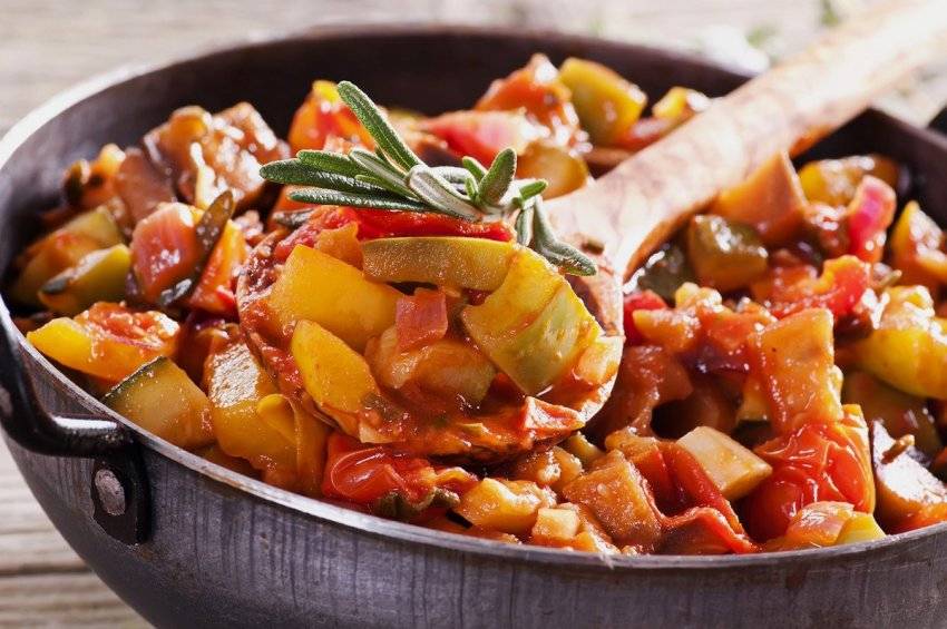 - рагу из томата, баклажана, кабачка и болгарского перца