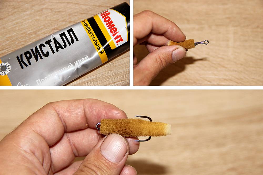 Такая склейка очень прочная, если и отрывается, то только с куском поролона. Работает данная приманка довольно стабильно весной, летом и осенью! Также можно наклеить глазки или сделать «плавнички» из акриловой нити. Поле для импровизаций обширное.