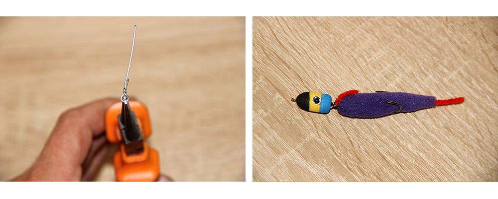 Такая склейка очень прочная, если и отрывается, то только с куском поролона. Работает данная приманка довольно стабильно весной, летом и осенью! Также можно наклеить глазки или сделать «плавнички» из акриловой нити. Поле для импровизаций обширное.