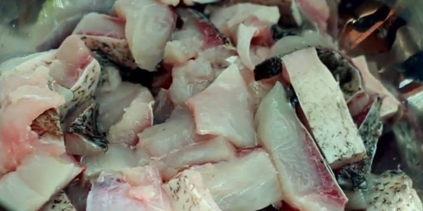 Разделывать рыбу нужно на средние куски по 4-5 см