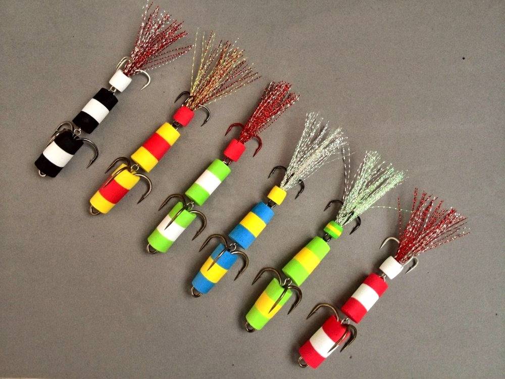 Изначально склеиваем пенополиуретановые пластины, не забывая об изменении цвета согласно собственному вкусу. Почерпнуть вдохновение помогут фирменные аналоги или варианты раскрасок от других рыбаков. Лучше использовать в качестве материала тапочки или строительный материал, так как сделать мандулу будет проще. Если толщина листа более 1 см, не придётся переклеивать между собой пласты.