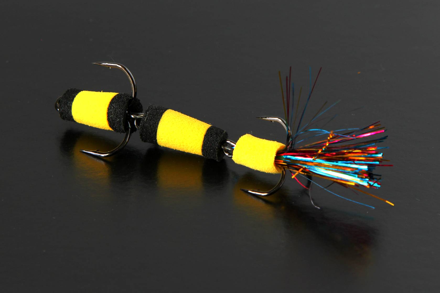 Важно, чтобы частички были закреплены подвижной сцепкой. Заметив колышущуюся яркую приманку, хищная рыба воспринимает ее как стаю мелких рыбешек и устремляется за добычей
