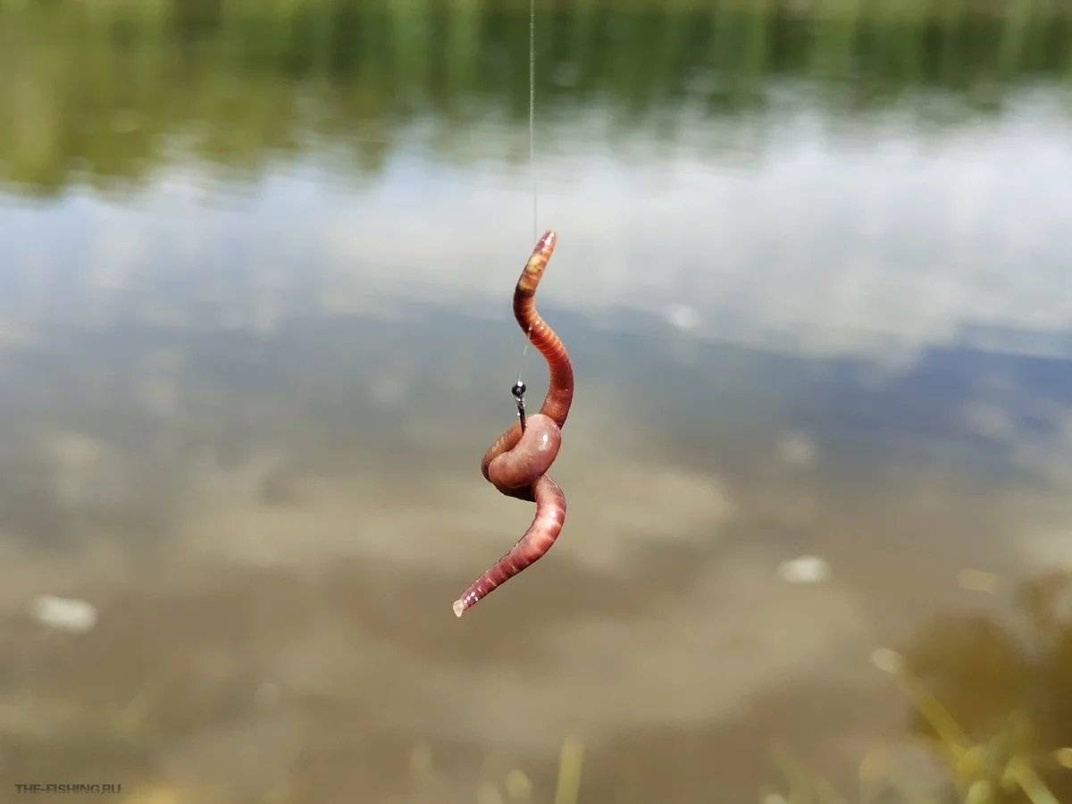 При ловле карпа лучше всего подойдут земляные черви. Чуть ниже головы наживка прокалывается крючком, а затем прокалывание делается в других местах. В остатке хвоста, размером 4 см, надежно прячется жало.