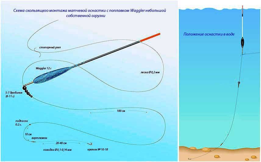 Отличительной особенностью этого вида монтажа является свободное скольжение буйка до тормоза. Скользящее соединение — идеальный вариант оснастки для лова на глубинах и дальних забросах.