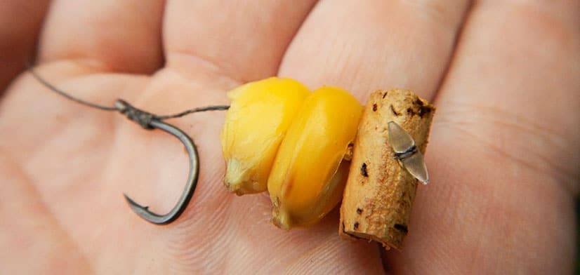- Для крупной рыбы на крючок лучше насадить 3–7 кукурузных зернышек.