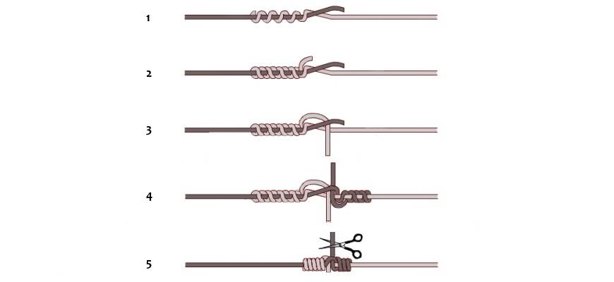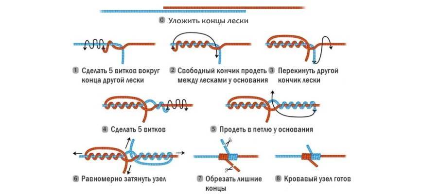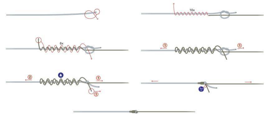 Условно безузловые способы соединения, когда основная нагрузка не концентрируется в узле, а распределяется по всей леске за счет силы трения: