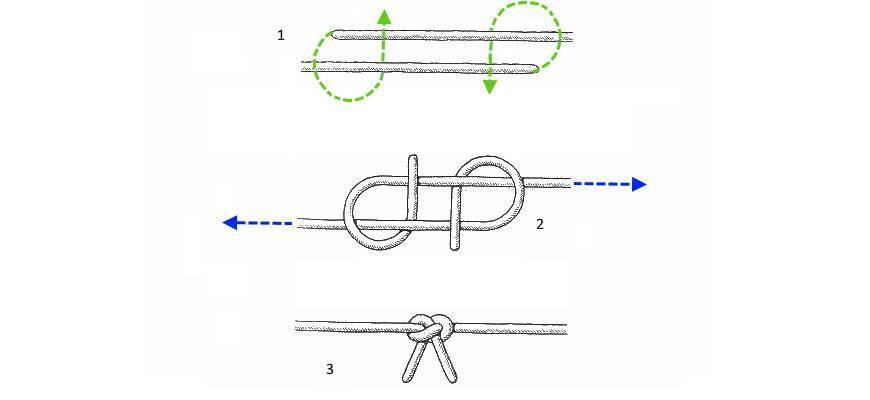 Вариант восьмерки, когда обе петли располагаются на цевье. Конструкция не способна самовольно развязаться, при необходимости разъединяют соединение легко.