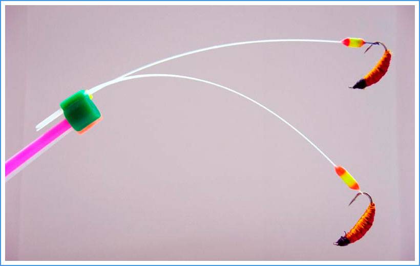 Такие комбинации приманок, особенно эффективны в период глухозимья, когда приманкой нужно играть очень деликатно и аккуратно, с небольшой амплитудой взмахов.