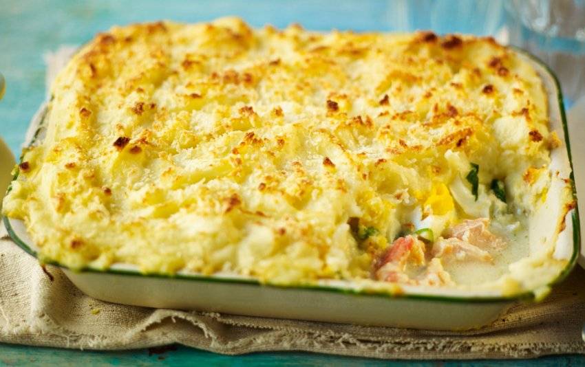 Рецепт рыбной запеканки отличается тем, что состоит из рыбного фарша и готового картофельного пюре. Фарш вы можете приготовить сами или купить готовый. Подойдет фарш из лосося, хека, минтая.