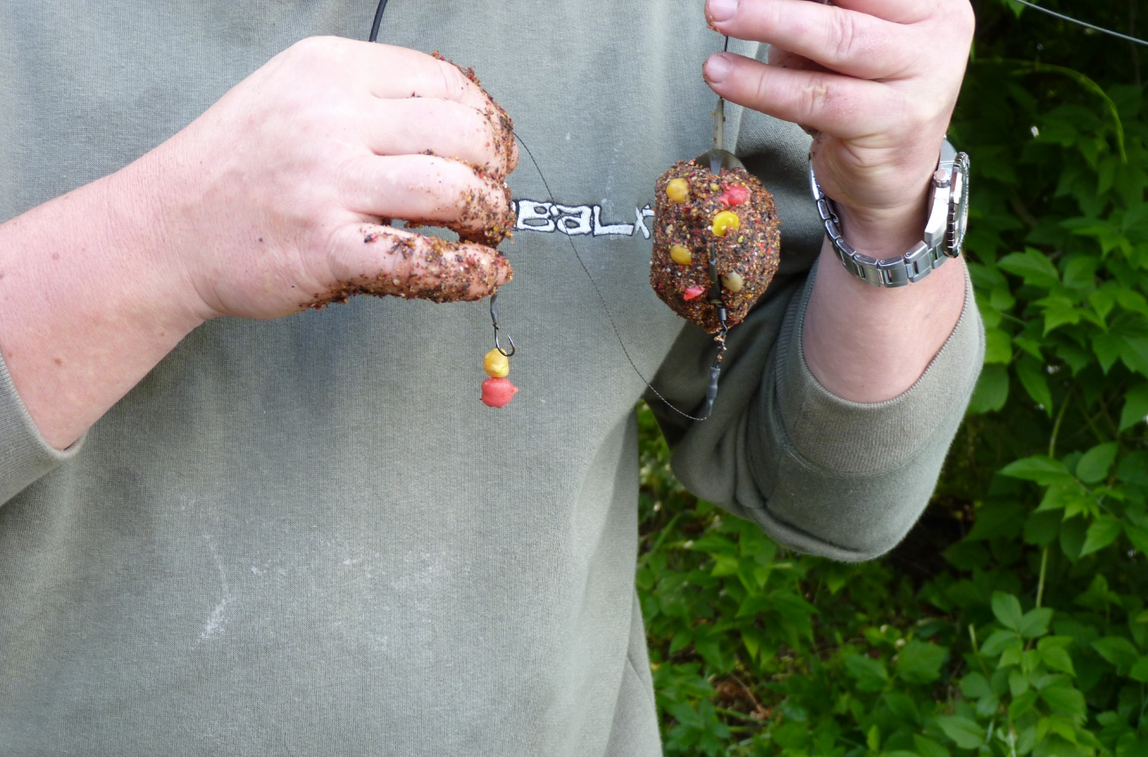 Ловля карпа на комбикорм может осуществляться и другим способом. Предварительно запаренный комбикорм разминают до тестообразного состояния. При этом в него добавляют подсолнечное масло, мед, муку и прочие ингредиенты для улучшения его консистенции и привлекательности, с точки зрения рыбы.