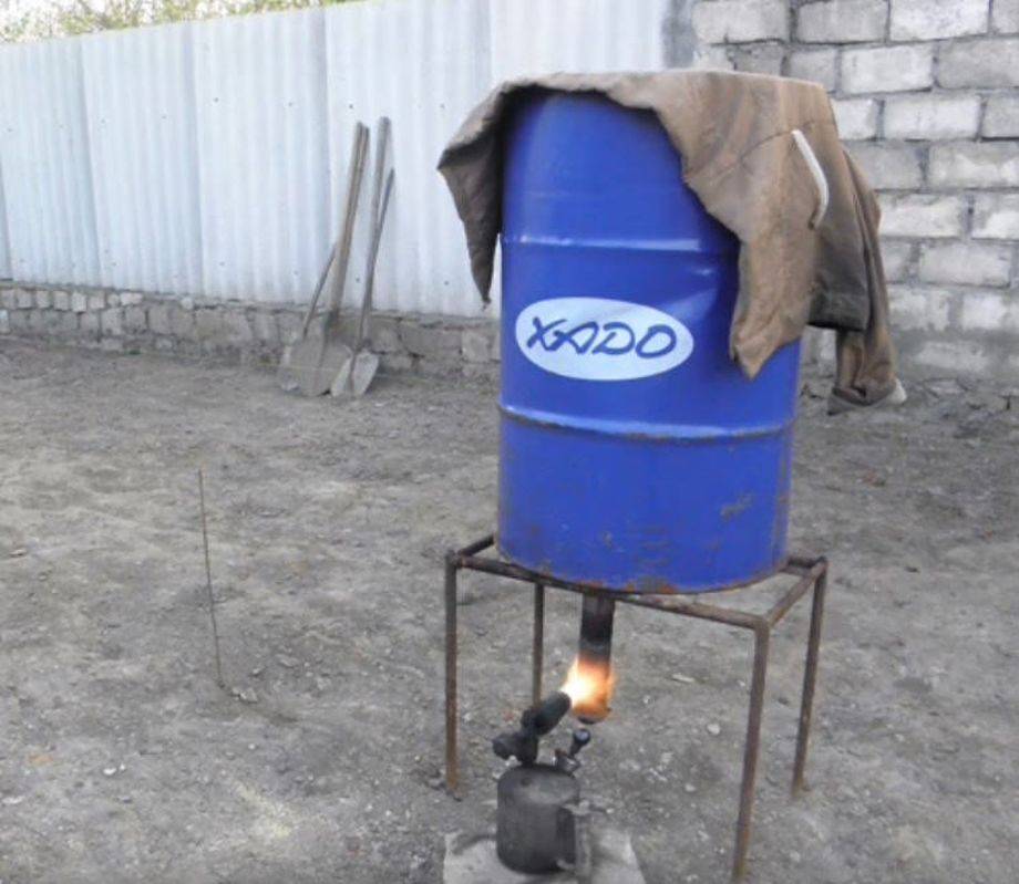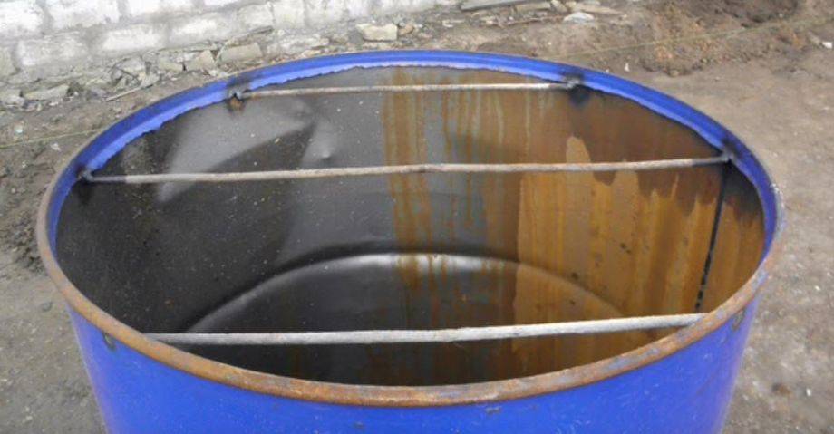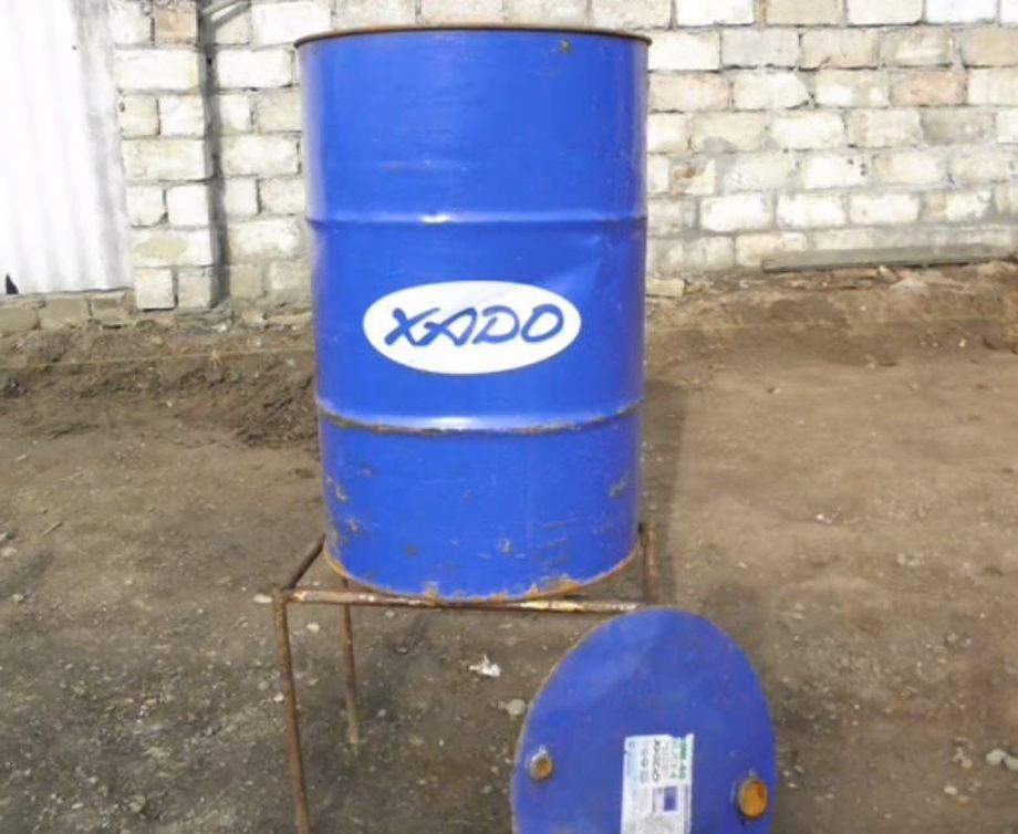 Подготовленная бочка помещается на подставку, для удобства проделываются углубления или яма для топки и розжига. Дым образуется естественным образом.