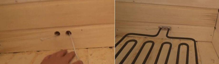Внизу шкафа сверлим два отверстия для подключения тэна.