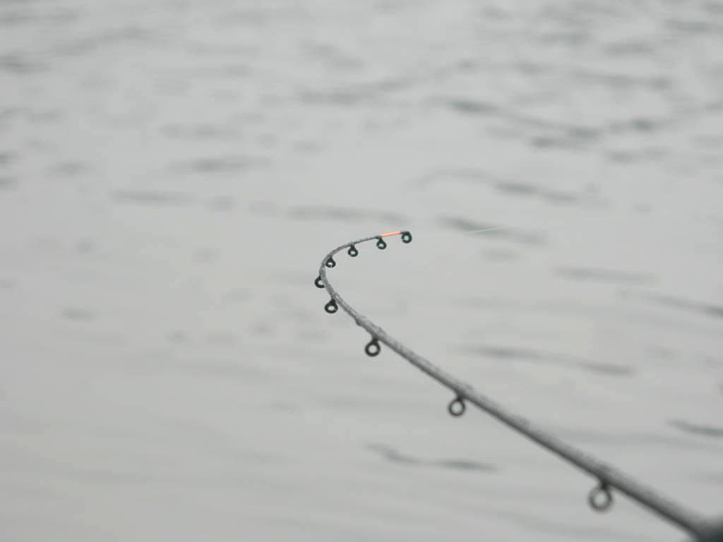 • При ловле в ветреную погоду, когда прибойная волна достаточно сильно раскачивает вершинку, имеет смысл еще больше ослаблять преднатяг и поднимать удилище максимально высоко. Все дело в том, что наибольшее волнение, как правило, именно в прибрежной зоне, и если опустить квивертип максимально низко к воде, набегающие волны вряд ли дадут определить осторожную потяжку рыбы;