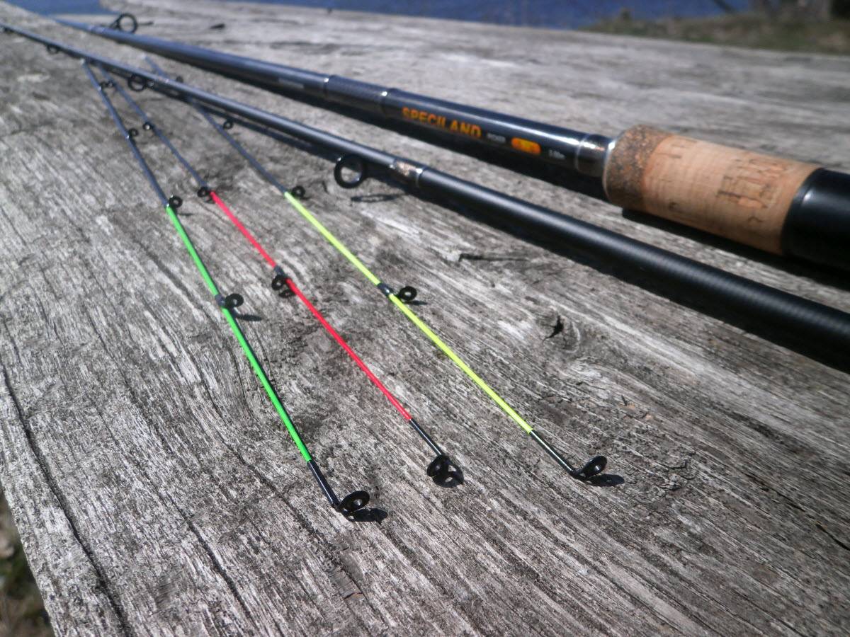 Тест вершинок определяется в унциях, и может быть таким: 1-я вершинка, красного цвета – 3 унции, 2-я вершинка, жёлтая – 2 унции, 3-я вершинка, зелёного цвета – 1 унция. (тесты указаны в качестве примера). У многих возникает вопрос, ведь 1 унция – это 28 грамм, а тест фидера при этом может быть и 90 и 120 грамм, дело в том, что тест фидерного удилища сбалансирован до вершинок, а разная степень жёсткости вершинок подбирается непосредственно под условия ловли