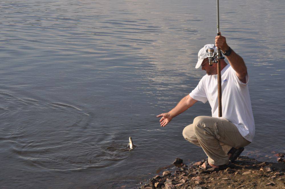 Рыба сильно сопротивляется в самом начале, но затем устаёт, после чего даёт спокойно подвести себя к берегу