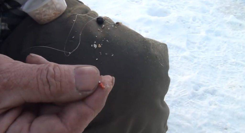 Выше мормышки на расстоянии 15-20 см можно привязать дополнительный крючок с наживкой. Длина поводка – 2-4 см. Также подойдет искусственная мушка.