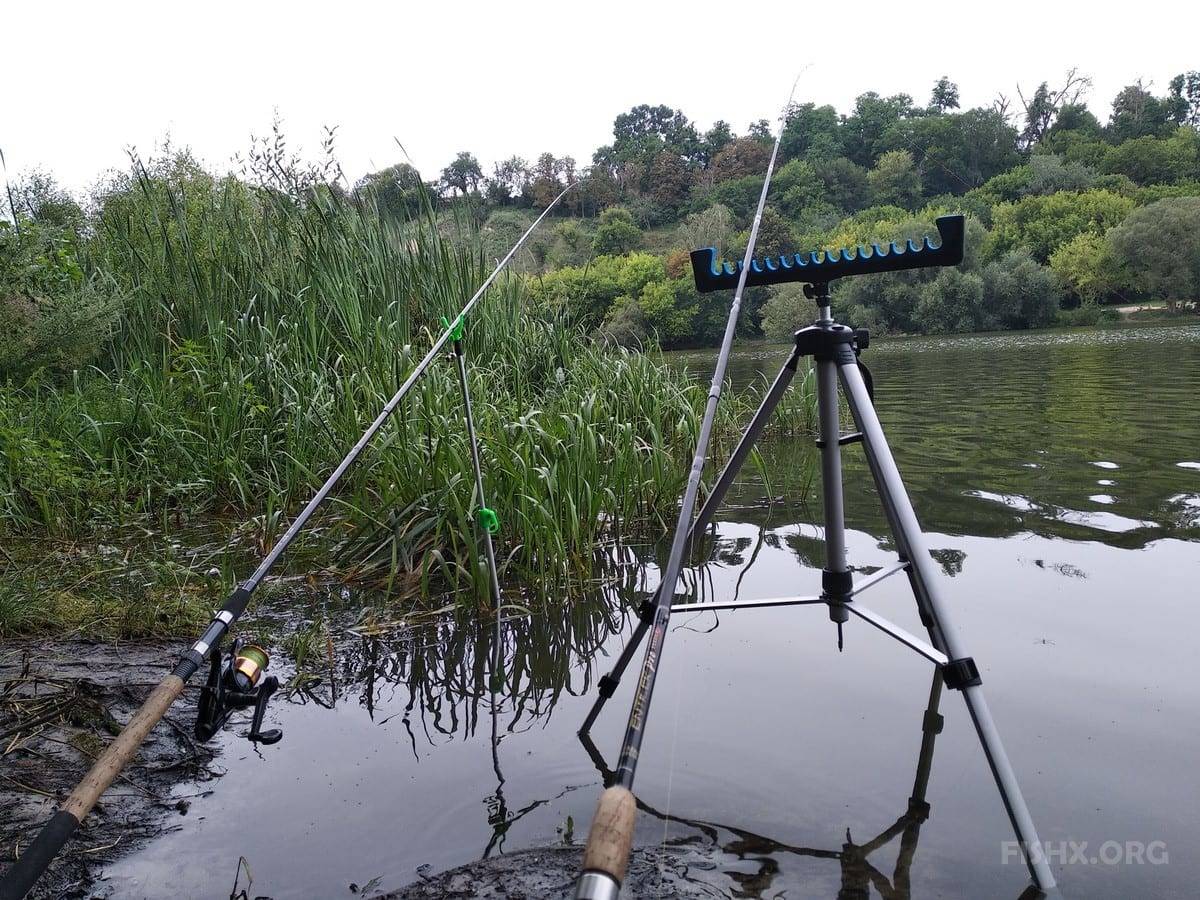 Фидерные удилища выбираются длиной 3.3-3.9 м с тестом до 150 грамм, ведь предполагается заброс тяжелых кормушек, причем на дальние дистанции.