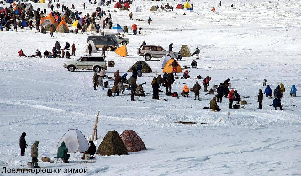 Зимой после того, как установится лед, корюшка ловится зимней поплавочной снастью. Лучшая наживка при этом – личинка репейной моли, мотыль. Зимняя рыбалка наиболее эффективна на мормышку в период ледостава, а также по последнему льду. В это время рыбка лучше проявляет активность на небольшой глубине, и она хорошо клюет.