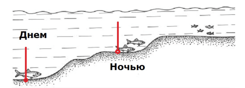 Обратите внимание на расположение кормушки, направление течения и кормовоё шлейф