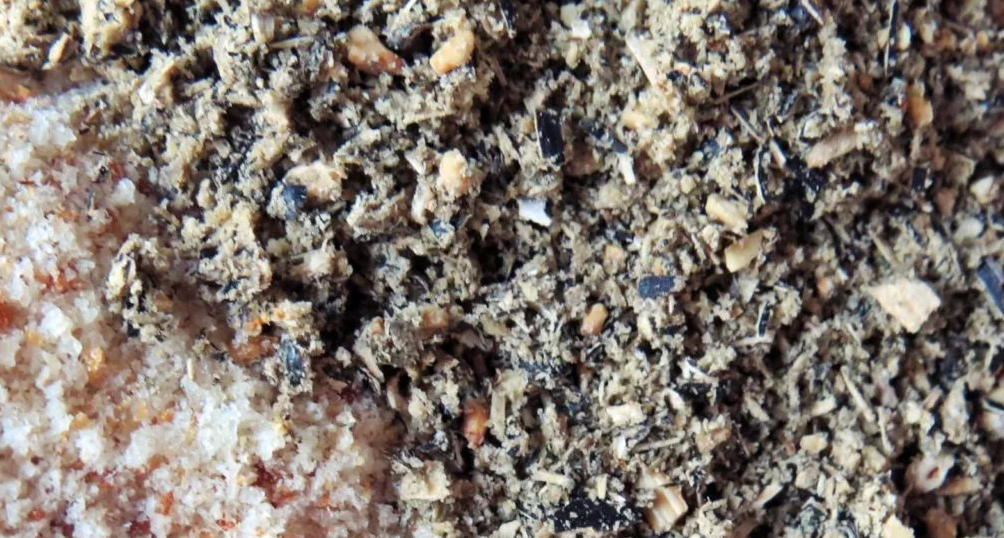 - Перемешивают макух (подсолнечный жмых) с запаренной пшеницей в соотношении 1 к 2. Немного прокисшая смесь дает больший эффект.