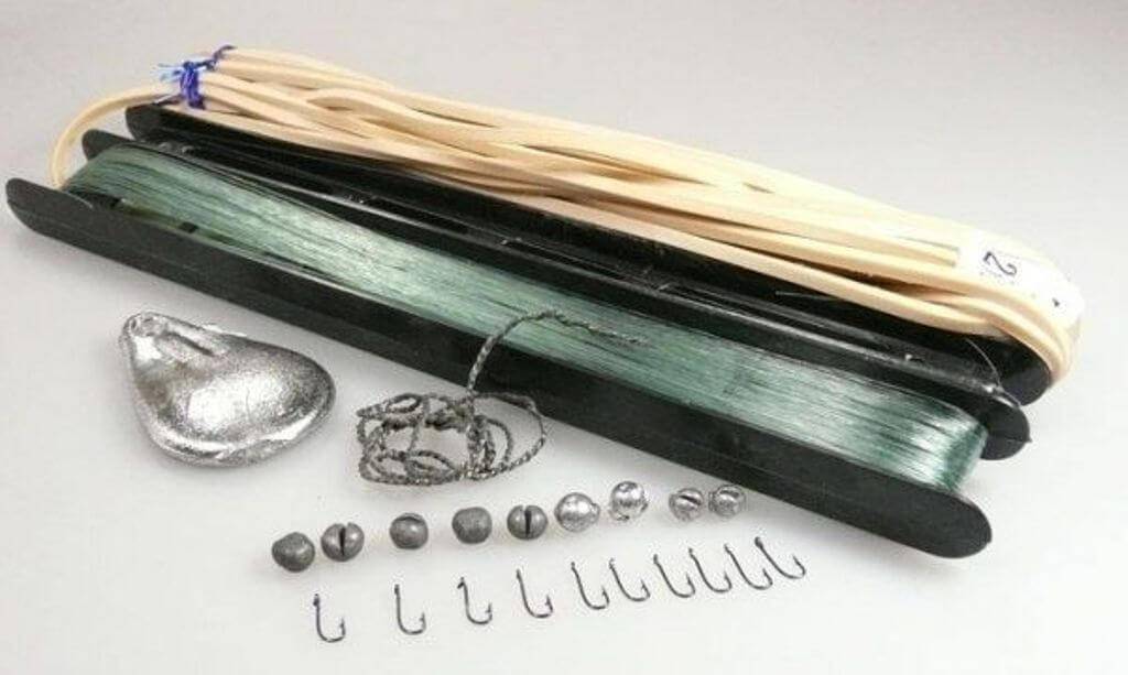 Самое дешевое и простое решение для оснастки донки — это просто моток лески и привязанные к ней крючки и грузило.