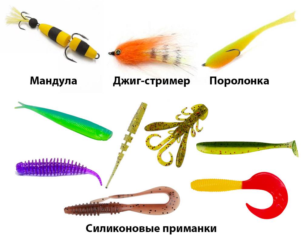 Сейчас используют силиконовые приманки разных форм и расцветок. Форма их может быть в виде рыбок, червячков и других фигур. Все они обязательно крепятся к крючкам, имеют утяжеленную конструкцию, именуемую джиг-головками.