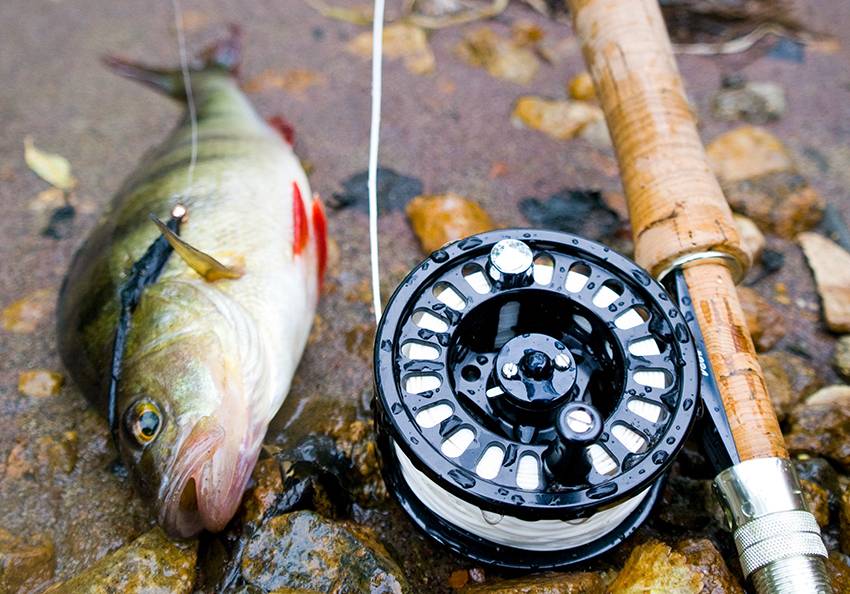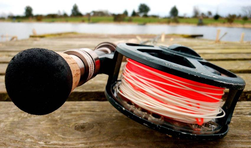 - При использовании второго варианта снасти ловля осуществляется с использованием проводочной удочки с большими кольцами и безинерционкой. Барабан такой катушки должен легко вращаться. К основной леске сечением 0,2…0,3 миллиметра закрепляют грузик, который используется для забрасывания мушки на нужное расстояние.