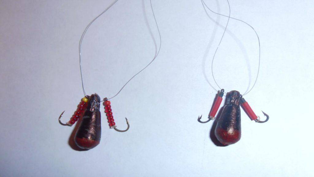 Состоит она из основной части, выполненной из свинца в виде груши, оливки. И двух боковых: в виде крючков с бисером, кембриками. Балдой, как и конусом, так — же методично стучат по дну. А во время пауз, аккуратно анимируют боковые крючки на приманке. Сложно сказать, что может имитировать данная приманка, но от этого она не становится менее эффективной и уловистой.