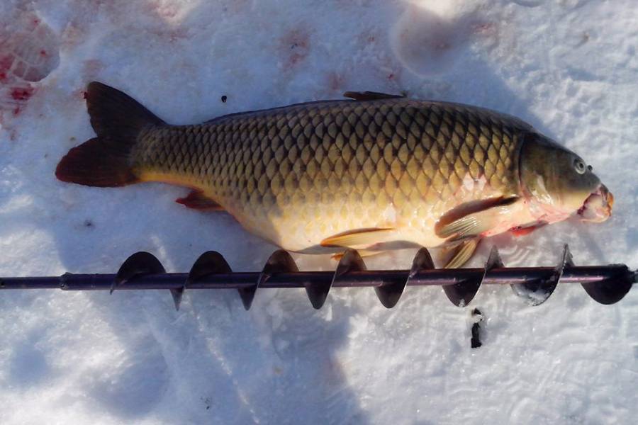 На любых других участках дикий карп может оказаться только случайно, поэтому бурение лунок наугад вряд ли принесет успех. Хотя, конечно, можно попытаться привлечь его прикормкой. Если повезет и он подойдет на привлекательный запах, нескучная рыбалка и выброс адреналина гарантированы.
