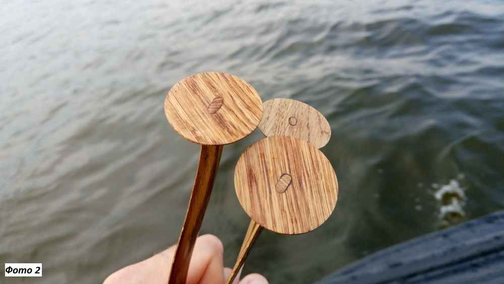 В общем, мы самостоятельно изготовили и опытным путем испытывали квоки не только из акации, но из граба, яблони (фото 5), черешни, а также титана. Причем с «пятаками» разной толщины и конфигурации (круг, овал, яйцевидный и др.), а также ручками разных геометрических форм. Обстоятельные ответы на этот счет заслуживают отдельной статьи, а пока озвучу главный собственный вывод – квоки необходимо подбирать под себя и под те условия ловли, в которых предстоит ловить сомов.