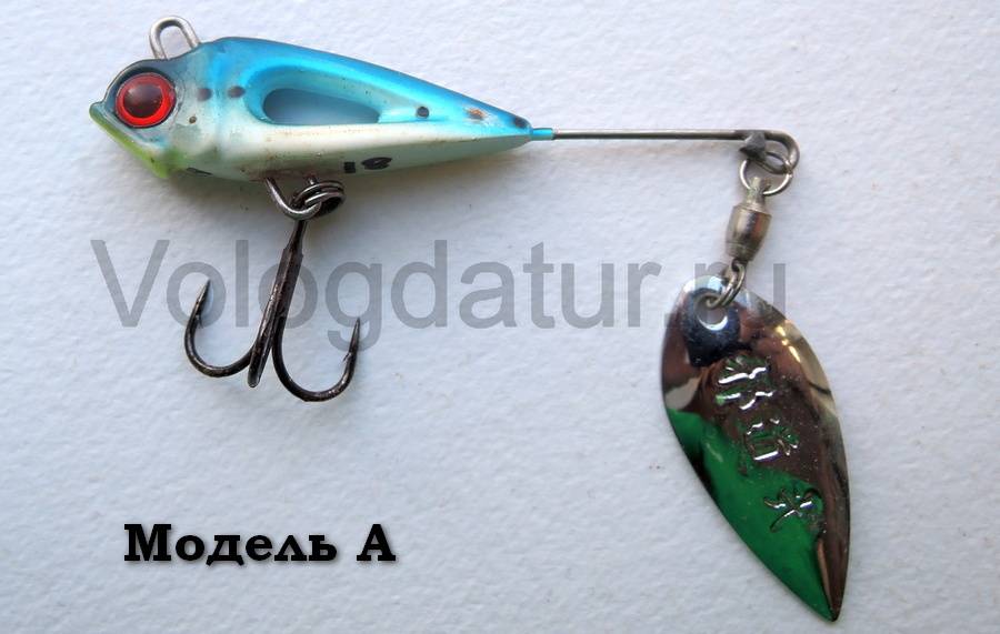 Модель А (фото ниже) имеет минимальное отклонение от вертикальной оси, создавая при этом максимальные акустические и вибрационные волны. Применять ее нужно в местах стоянки рыбы. Допустим, вы приехали на (щучью, судаковую) яму. Вы знаете, что рыба тут должна быть. Тогда ставим вот такую приманку и пробуем.
