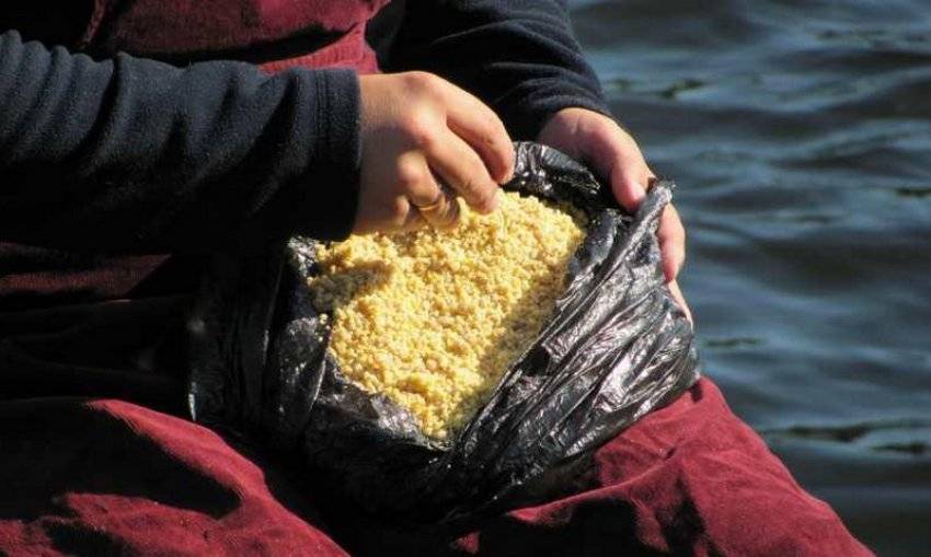 Самые эффективные варианты для прикармливания — сухая смесь (доводят до требуемой консистенции перед рыбалкой), сваренная каша и бойл-самокат.