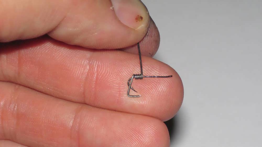 - Впаивают крючок и, если необходимо, колечко для крепления лески.