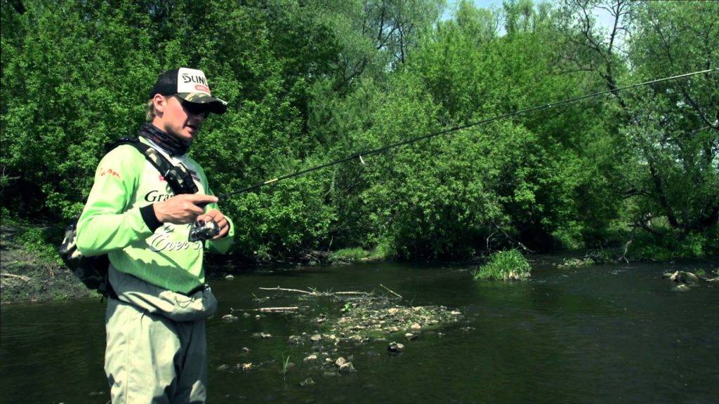 На средних и больших реках лучшим вариантом будет спиннинг длиной 2,4-2,7 метров и тестом до 12-14 грамм. С ним вы сможете без труда забрасывать приманки на дальние расстояния и выполнять проводку упористых вертушек и кренков, а также легких колеблющихся блесен и некрупных поверхностных приманок.