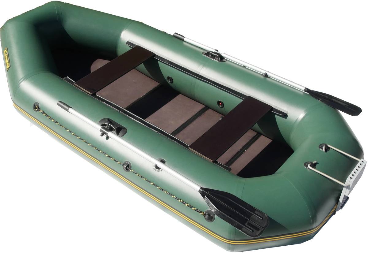 Дно данной модели усиленное, слань жесткая. Алюминиевые весла, входящие в комплектацию, достаточно прочные и удобные. Сиденья передвижные. Длина 2,8 м, ширина 1,4 м.