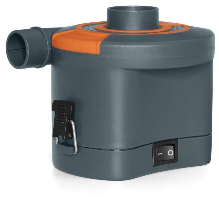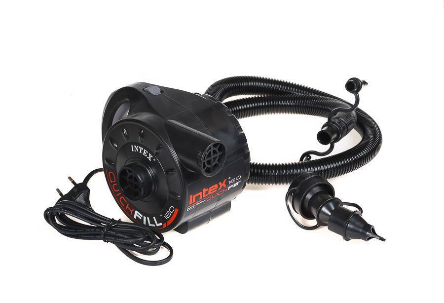 Четвёртым становится модель насоса электрического типа увеличенной мощности. В комплекте поставляется три переходника, которые позволяют накачивать не только лодки, но и надувные матрасы, бассейны, мячи и прочие изделия. Корпус изделия изготовлен из ударопрочного пластика, не боящегося механических повреждений. Благодаря компактным размерам, устройство удобно транспортировать, оно легко поместится в небольшую сумку. Питание осуществляется от электросети.