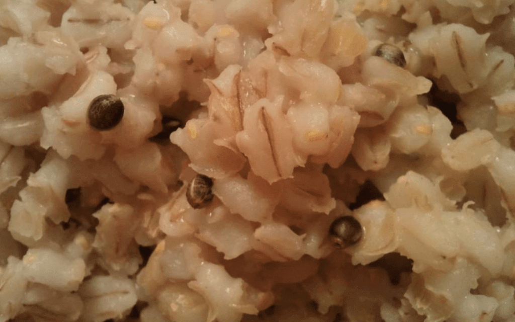 - Засыпать 1 часть перловки в термос. Затем залить перловку кипятком. Оставить термос на ночь. Утром (перед рыбалкой) слить воду. Добавить ароматизатор.