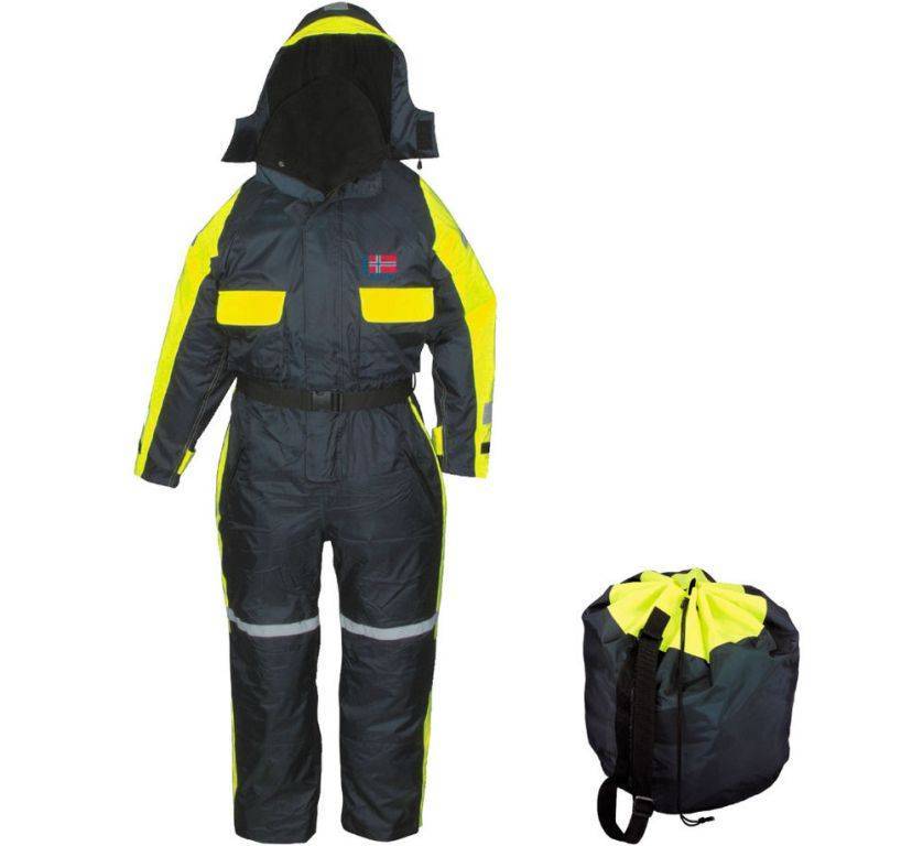 Плавающий костюм, который может оказаться незаменим при ловле в начале и в конце зимы. В случае провала под лед он удерживает человека на поверхности, переворачивая его лицом вверх. При этом костюм защищает от попадания ледяной воды.