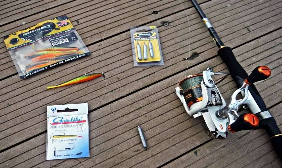 Дроп-шот не предъявляет особых требований к спиннингу или катушке. Любой джиговый или универсальный спиннинг вполне подойдет для ловли на дроп-шот. Если вы собираетесь ловить на дроп-шот целенаправленно, то следует отдать предпочтение спиннингу быстрого и сверхбыстрого строя, длиной от 2,1 до 2,7 метра. При ловле на дроп-шот можно использовать более короткий спиннинг, при ловле с берега лучше подойдет более длинный спиннинг.